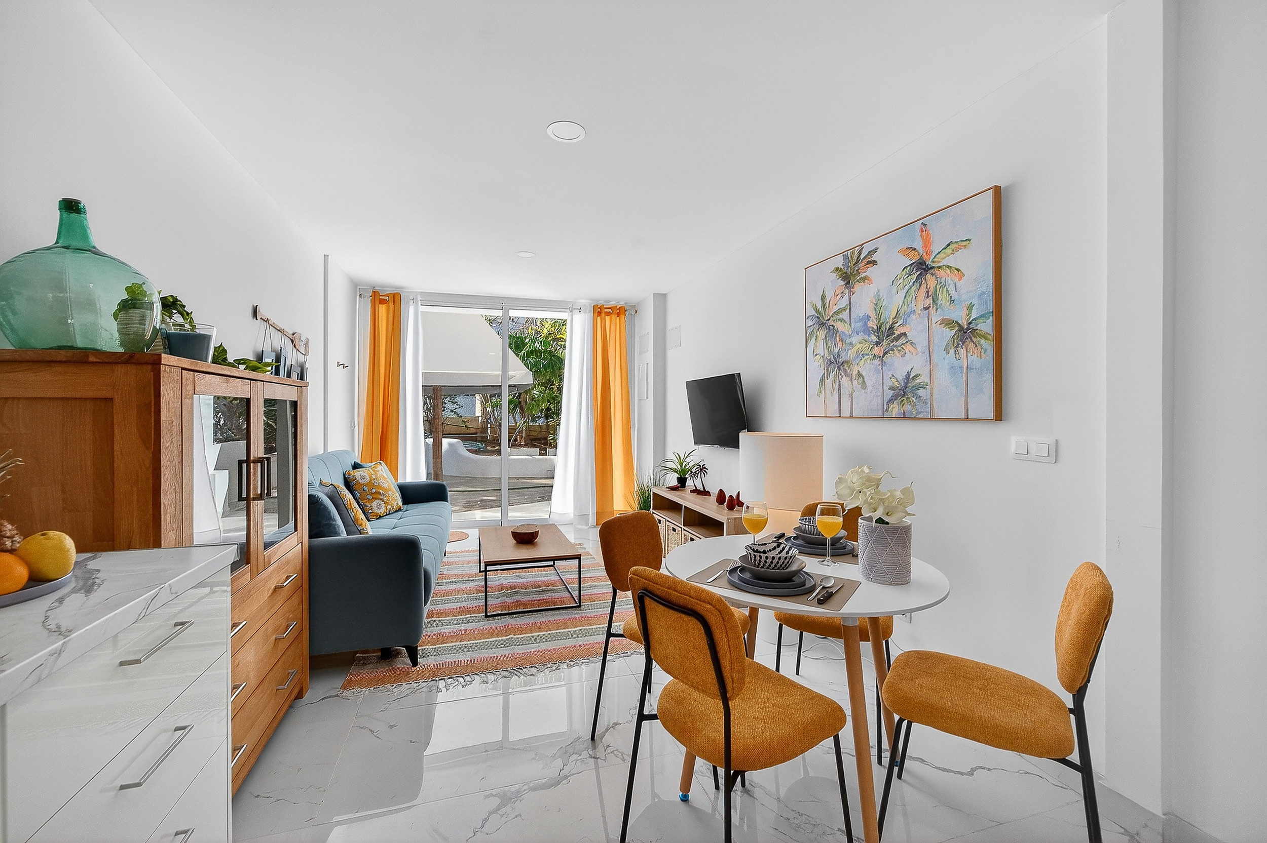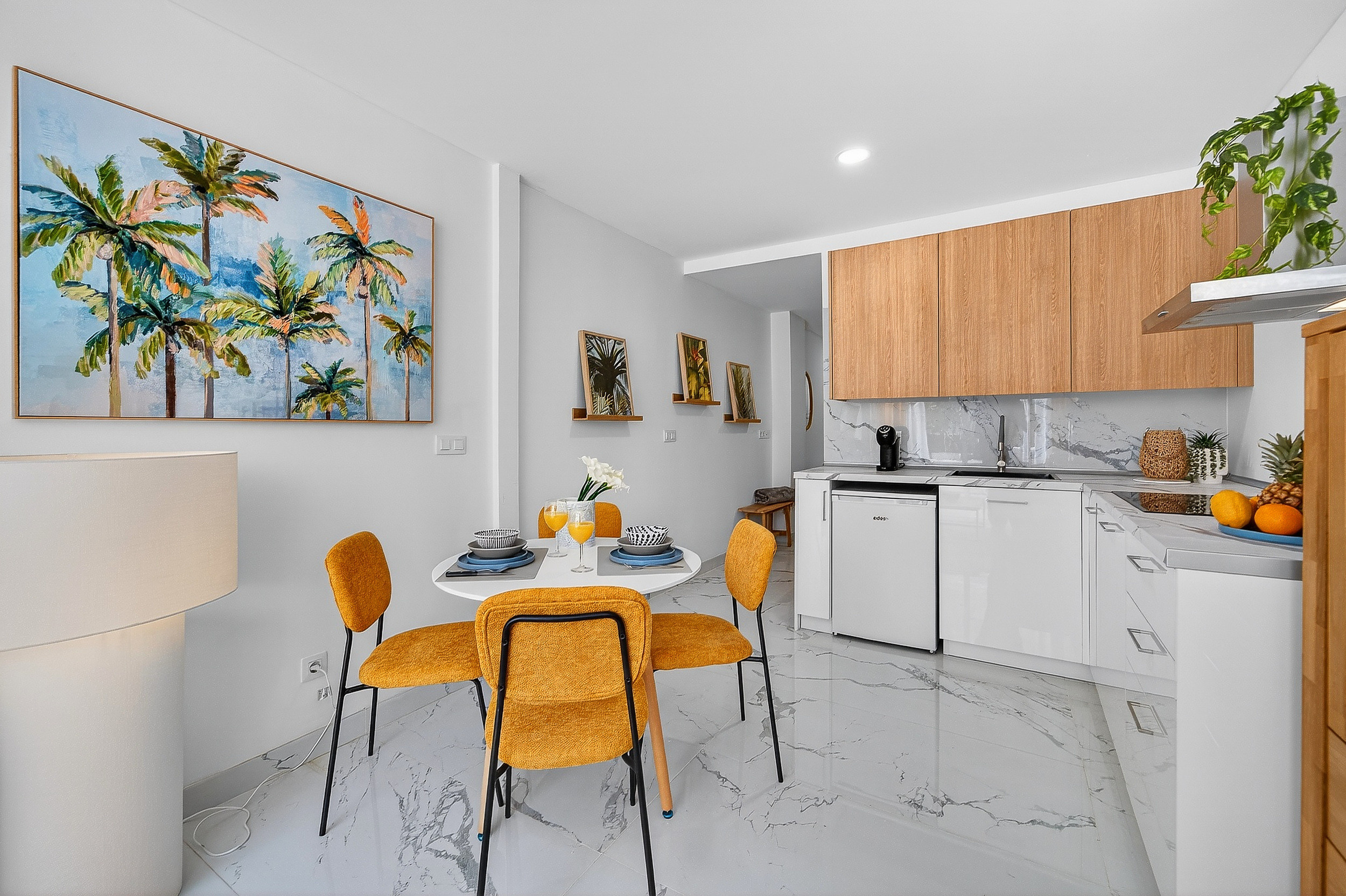 Enjoy your stay in a completely new and high-quality renovated apartment in the heart of Playa de las Américas. Here you’ll find modern design, thoughtful comfort and high-quality amenities, ideal for guests who value quality and style. The bright living area invites you to relax with a comfortable sofa and a smart TV. Adjacent to this is the dining area and the fully equipped, modern kitchen, which leaves nothing to be desired, perfect for both short and longer stays. For maximum comfort, the apartment is equipped with air conditioning and high-speed Wi-Fi. The bedroom features a comfortable double bed with high-quality mattresses and ample storage space. The elegant bathroom features a modern, spacious shower and enhances the apartment’s overall high-quality feel. A real highlight is the private terrace: the perfect spot for a relaxed breakfast in the sun or a quiet evening with a glass of wine. The stylish furnishings create a pleasant holiday atmosphere and make this area a special retreat. The apartment is located in the popular Ponderosa complex in Playa de las Americas, one of the most sought-after areas of Tenerife. Restaurants, bars and supermarkets are all within walking distance. The bus station is opposite the complex, and Siam Park and Siam Mall are just a few minutes’ walk away. We at Tenerife Heroes are your local rental agency offering personalised on-site service. We are available around the clock and speak German, English and Spanish. From handing over the keys to providing tips on excursions and car hire. This apartment is the perfect choice for anyone who doesn’t just want to stay overnight in Tenerife, but wants to live in style. Book now and secure your spot in the sun!