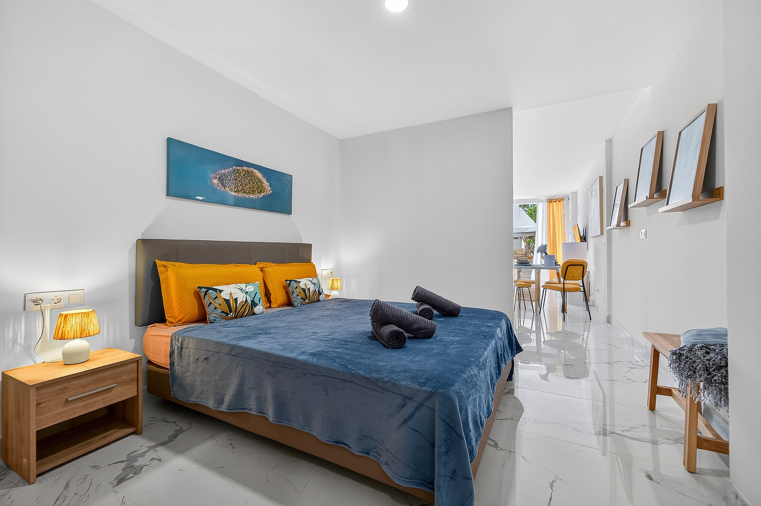 El apartamento cuenta con un amplio dormitorio con una cómoda cama doble y suficiente espacio de almacenamiento, una sala de estar abierta con una cocina moderna y totalmente equipada, y un cuarto de baño con ducha y WC. Lo más destacado es la terraza con vistas directas al Atlántico, perfecta para tomar un café por la mañana al amanecer o una copa de vino al atardecer. Equipamiento: Wifi gratuito en el apartamento, lavadora, cocina totalmente equipada (nevera, fogones, microondas, cafetera, tostadora, vajilla y cubertería), TV, ropa de cama, toallas y toallas de piscina incluidas, plancha y tabla de planchar, caja fuerte y mucho más.