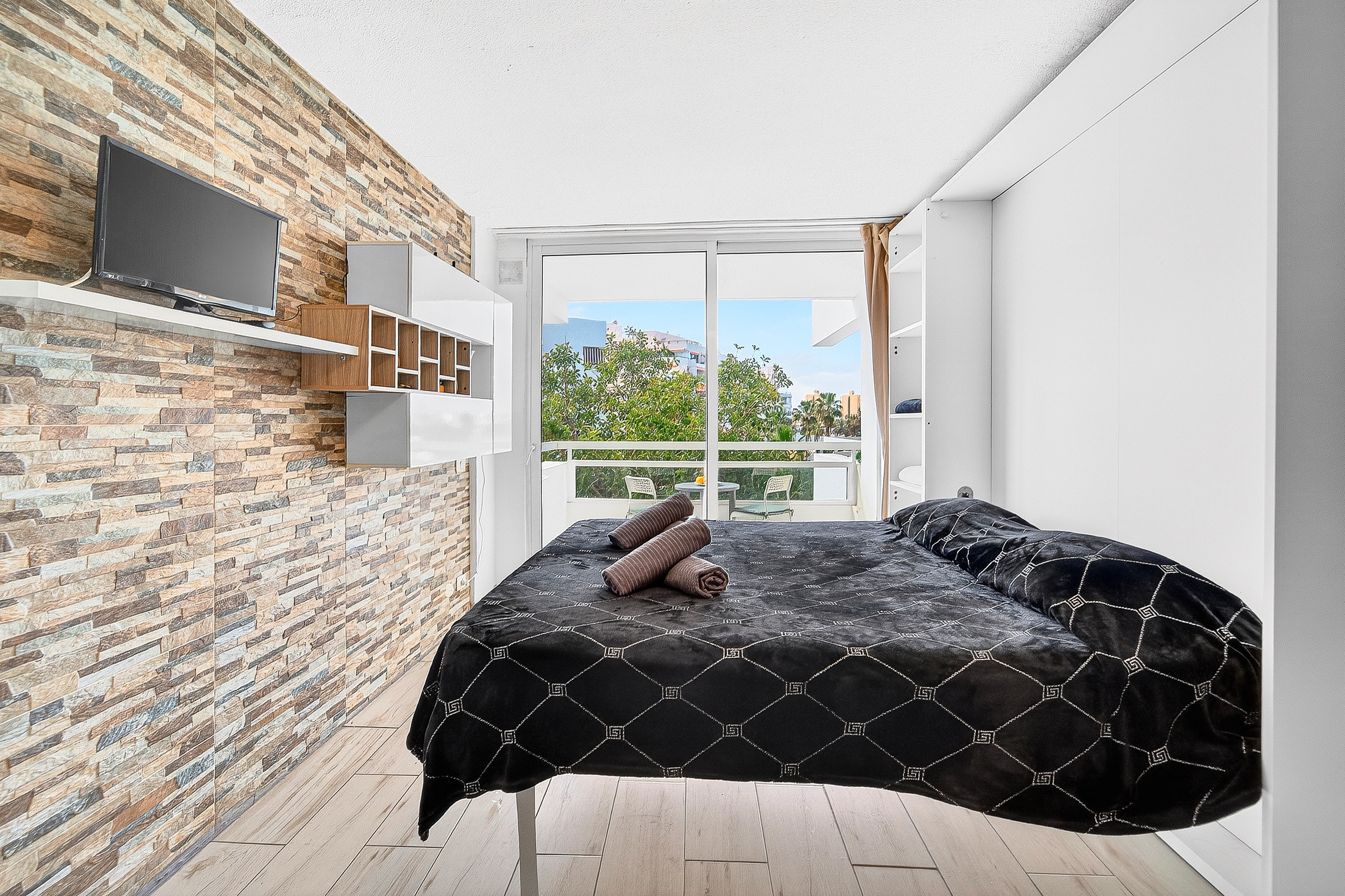 El estudio se encuentra en el popular complejo Ponderosa, en Playa de las Américas, una de las zonas más solicitadas de Tenerife. Hay restaurantes, bares y supermercados en las inmediaciones, a los que se puede llegar cómodamente a pie. La estación de autobuses está justo enfrente, y tanto el Siam Park como el Siam Mall se encuentran a solo unos minutos a pie.