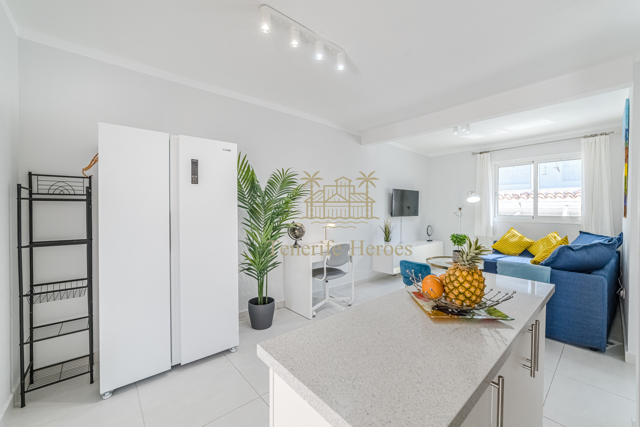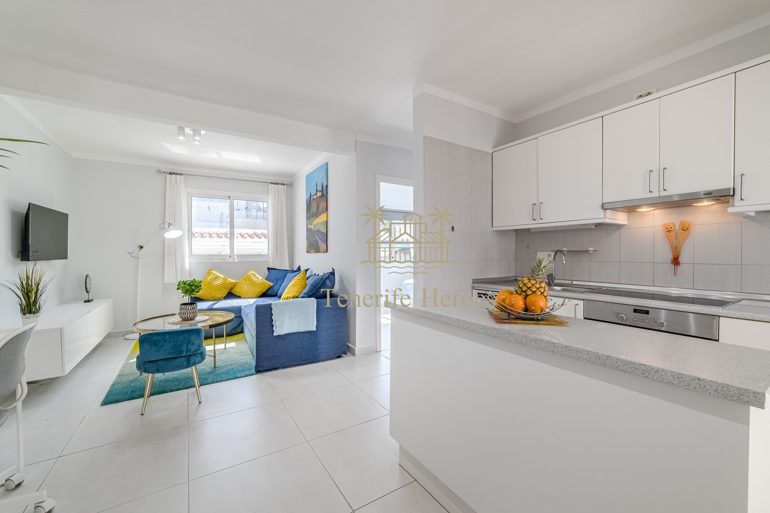 En una de las zonas más codiciadas de la isla sur, a solo unos 200 metros del mar, se encuentra este apartamento excepcional, una joya poco común en el mercado actual. El apartamento ha sido completamente renovado y destaca por sus líneas limpias, su diseño moderno y un ambiente que irradia tranquilidad y calidad. En sus más de 104 metros cuadrados (74 de superficie habitable y 30 de terraza) se combinan la elegancia atemporal y la ligereza mediterránea. La amplia sala de estar con cocina abierta se funde con el jardín de invierno acristalado, una estancia llena de luz con acceso directo a la impresionante terraza de 30 metros cuadrados con vistas al mar. Aquí arriba uno se siente libre: mar, sol, luz, simplemente un lugar que inspira. El apartamento cuenta con tres dormitorios, 1 cuarto de baño, 1 amplia sala de estar con cocina abierta, 1 trastero independiente y jardín de invierno. Toda la unidad ha sido diseñada con materiales de alta calidad y transmite la sensación de un loft boutique junto al mar. Especialmente atractivo: la propiedad cuenta con la licencia adecuada para el alquiler vacacional (VV) (transferible), una ventaja decisiva para los compradores que desean combinar rentabilidad y estilo de vida. Además, la estructura del edificio ofrece la posibilidad de construir un segundo cuarto de baño o una amplia azotea, un potencial que aumenta aún más el valor de esta propiedad. Una piscina comunitaria climatizada, zonas exteriores bien cuidadas y la proximidad a los mejores restaurantes, boutiques y playas de Playa de las Américas subrayan la singularidad de esta oferta. Actualmente no hay ningún inmueble comparable en esta región que combine de forma tan armoniosa la ubicación, el estilo y el valor de inversión. Quien compre aquí no solo se asegura un apartamento, sino un pedazo de Tenerife al más alto nivel. No dude en ponerse en contacto con nosotros para obtener más información o concertar una visita personal. Si lo desea, también podemos mostrarle el apartamento mediante videollamada y enseñarle cada detalle en tiempo real.