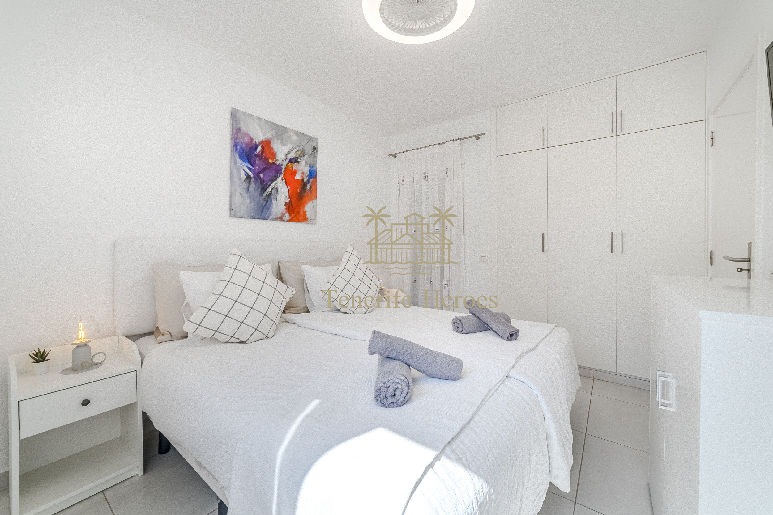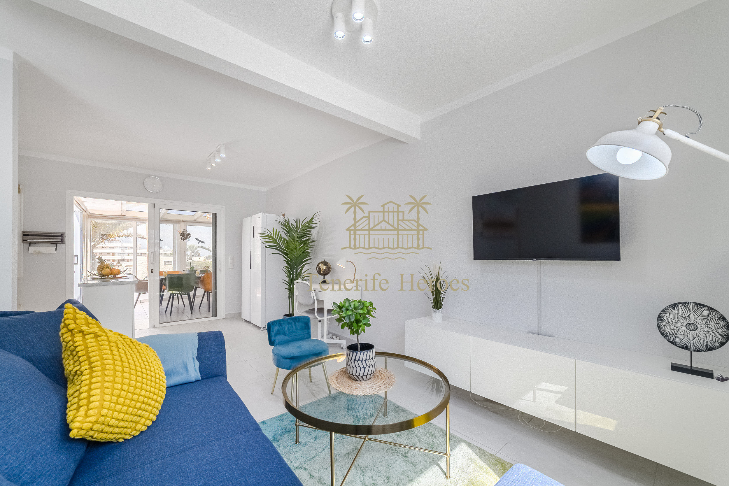 In einer der begehrtesten Lagen der Südinsel, nur rund 200 Meter vom Meer entfernt, befindet sich dieses außergewöhnliche Apartment – ein seltenes Juwel auf dem heutigen Markt. Die Wohnung wurde vollständig renoviert und besticht durch klare Linien, modernes Design und eine Atmosphäre, die sofort Ruhe und Qualität ausstrahlt. Auf über 104 Quadratmetern (74 Wohnfläche und 30 Terrasse) vereinen sich zeitlose Eleganz und mediterrane Leichtigkeit. Der großzügige Wohnbereich mit offener Küche geht fließend in den verglasten Wintergarten über – ein Raum voller Licht, mit direktem Übergang auf die beeindruckende 30-Quadratmeter-Terrasse mit Meerblick. Hier oben fühlt man sich frei: Meer, Sonne, Licht, einfach ein Ort, der inspiriert. Das Apartment verfügt über drei Schlafzimmer, 1 Badezimmer, 1 grosser Wohnbereich mit offener Küche, 1 separater Abstellraum bund Wintergarten. Die gesamte Einheit wurde mit hochwertigen Materialien gestaltet und vermittelt das Gefühl eines Boutique-Lofts am Meer. Besonders attraktiv: Die Immobilie verfügt über die richtige Lizenz zur Ferienvermietung (VV) – ( ist übertragbar) ein entscheidender Vorteil für Käufer, die Rendite und Lifestyle verbinden möchten. Zudem bietet die Struktur des Gebäudes die Möglichkeit, ein zweites Badezimmer oder eine großzügige Dachterrasse zu realisieren – ein Potenzial, das den Wert dieser Immobilie nochmals steigert. Ein beheizter Gemeinschaftspool, gepflegte Außenbereiche und die Nähe zu den besten Restaurants, Boutiquen und Stränden von Playa de las Américas unterstreichen die Einzigartigkeit dieses Angebots. Zurzeit gibt es in dieser Region kein vergleichbares Objekt, das Lage, Stil und Investitionswert auf so harmonische Weise verbindet. Wer hier kauft, sichert sich nicht nur eine Wohnung – sondern ein Stück Teneriffa auf höchstem Niveau. Kontaktieren Sie uns gerne für weitere Informationen oder eine persönliche Besichtigung.Auf Wunsch führen wir Sie auch per Videocall durch das Apartment und zeigen Ihnen jedes Detail in Echtzeit.