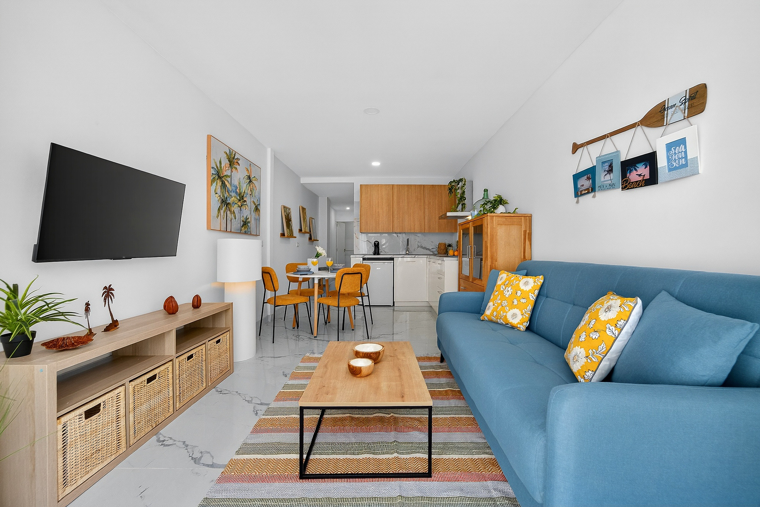 Erleben Sie Ihren Aufenthalt in einem komplett neu und hochwertig renovierten Apartment im Herzen von Playa de las Américas. Hier erwartet Sie modernes Design, durchdachter Komfort und eine Ausstattung auf hohem Niveau, ideal für Gäste, die Wert auf Qualität und Stil legen. Der helle Wohnbereich lädt mit einem bequemen Sofa und Smart-TV zum Entspannen ein. Direkt angrenzend befindet sich der Essbereich sowie die voll ausgestattete, moderne Küche, die keine Wünsche offenlässt, perfekt für kurze wie auch längere Aufenthalte. Für maximalen Komfort ist das Apartment ist mit einer Klimaanlage ausgestattet und schnelles Internet Wifi. Das Schlafzimmer bietet ein komfortables Doppelbett mit hochwertigen Matratzen sowie ausreichend Stauraum. Das elegante Badezimmer verfügt über eine moderne, großzügige Dusche und unterstreicht den hochwertigen Gesamteindruck der Wohnung. Ein echtes Highlight ist die private Terrasse: Der perfekte Ort für ein entspanntes Frühstück in der Sonne oder einen ruhigen Abend bei einem Glas Wein. Die stilvolle Möblierung schafft eine angenehme Urlaubsatmosphäre und macht diesen Bereich zu einem besonderen Rückzugsort. Das Apartment befindet sich in der beliebten Anlage Ponderosa in Playa de las Americas, einer der gefragtesten Gegenden Teneriffas. In unmittelbarer Nähe finden sie Restaurants, Bars & Supermärkte in Gehweite. Der Busbahnhof ist gegenüber der Anlage und der Siam Park und Siam Mall nur wenige Gehminuten entfernt. Wir von Tenerife Heroes, Ihre lokale Vermietungsagentur mit persönlichem Service vor Ort. Wir sind rund um die Uhr erreichbar und sprechen Deutsch, Englisch und Spanisch. Von der Schlüsselübergabe bis zu Ausflugstipps und Mietwagen. Dieses Apartment ist die perfekte Wahl für alle, die auf Teneriffa nicht nur übernachten, sondern stilvoll wohnen möchten. Buchen Sie jetzt und sichern Sie sich Ihren Platz in der Sonne!